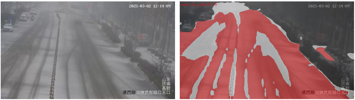 3月2日,濟南迎來雨雪和寒潮天氣,累計過程降雪量可達15毫米-25毫米,積雪深度可達15厘米以上。濟南市氣象臺發(fā)布暴雪紅色預(yù)警信號、道路結(jié)冰紅色預(yù)警信號和寒潮黃色預(yù)警信號。極端天氣下,由濟南能源集團所屬大數(shù)據(jù)集團、神思電子公司搭建的數(shù)算法全要素融合調(diào)度平臺發(fā)揮實戰(zhàn)作用,深度整合視頻感知數(shù)據(jù)和視頻算法、算力資源,迅速啟動道路積雪監(jiān)測場景應(yīng)用,為城市管理部門提供了及時、準(zhǔn)確的道路積雪信息,為城市交通的順暢和市民的出行安全提供了有力保障。